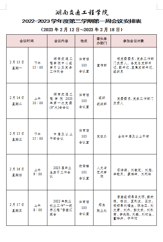 bevictor伟德官网2022-2023学年度第二学期第一周会议安排表