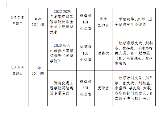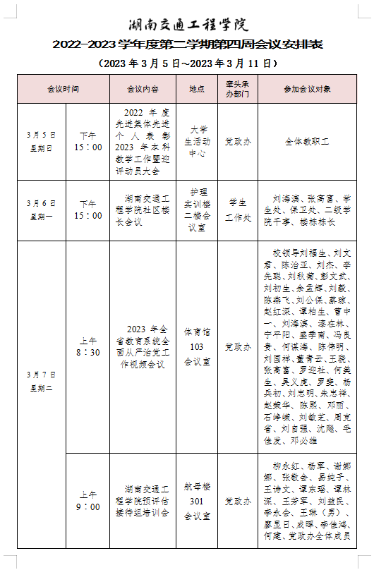 bevictor伟德官网 2022-2023学年度第二学期第三周会议安排表