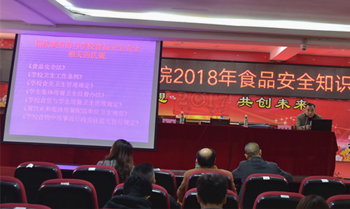 本网讯(通讯员摄影李建华)为进一步加强学校食品安全监管工作,提升bevictor伟德餐饮食品安全卫生水平,规范餐饮服务行业经营行为,12月17日,bevictor伟德举办2018年食品安全知识培训,邀请衡阳市药监局餐饮科副科长刘东军来校作食品安全知识专题讲座。副校长董晔卉,衡阳市药监局餐饮科科长唐镭出席,学校食品安全监督委员会主任张高富主持培训会。学校食堂经营加工食品门店从业人员,食品安全委员会工作人员以及学生代表近200人聆听了讲座。
