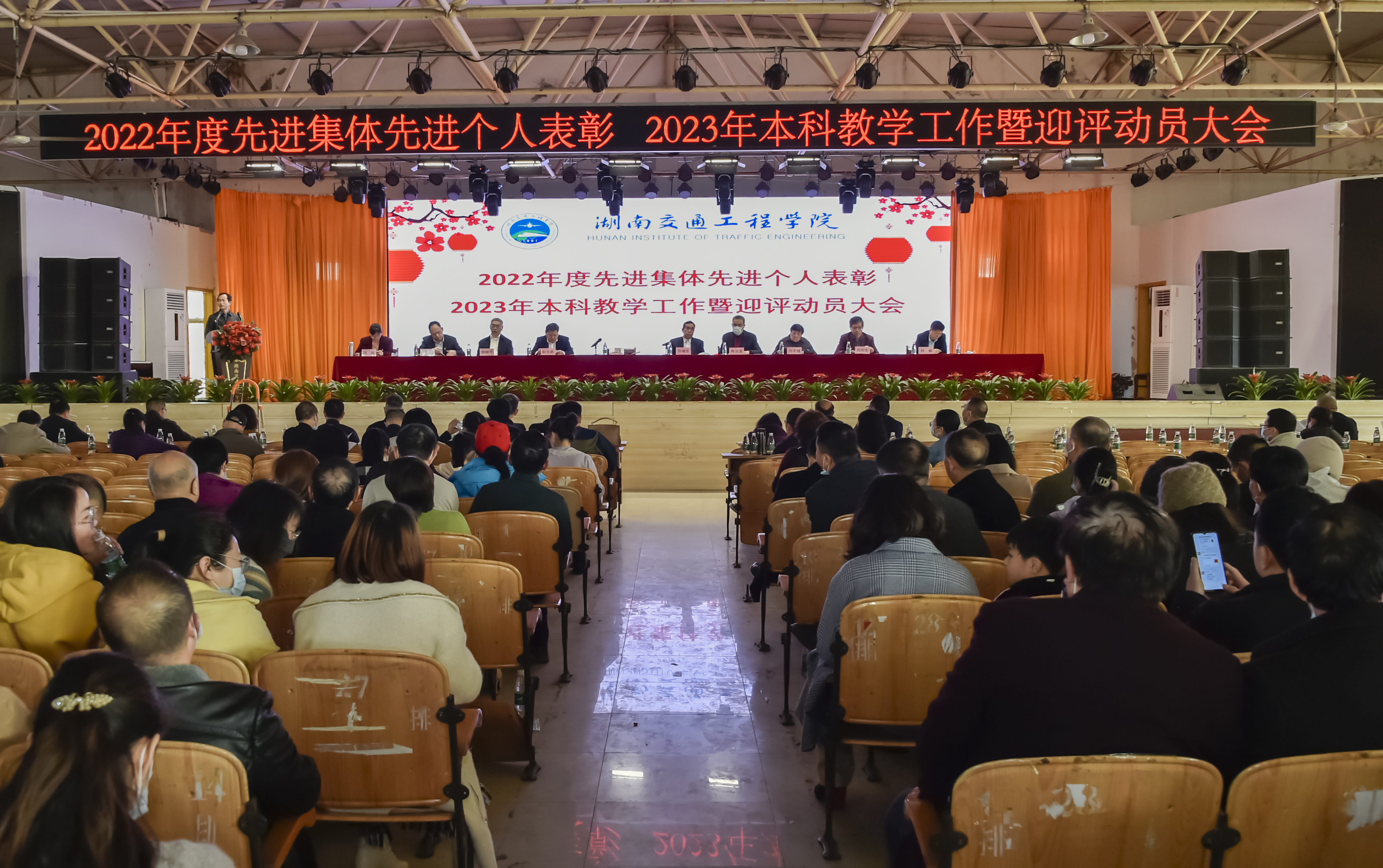 本网讯(记者 赵红深 摄影 李建华 奉隆源)3月5日下午,学校在大学生活动中心隆重举行2022年度先进表彰暨2023年本科教学工作迎评动员大会,全体校领导出席会议,全体教职工参会。