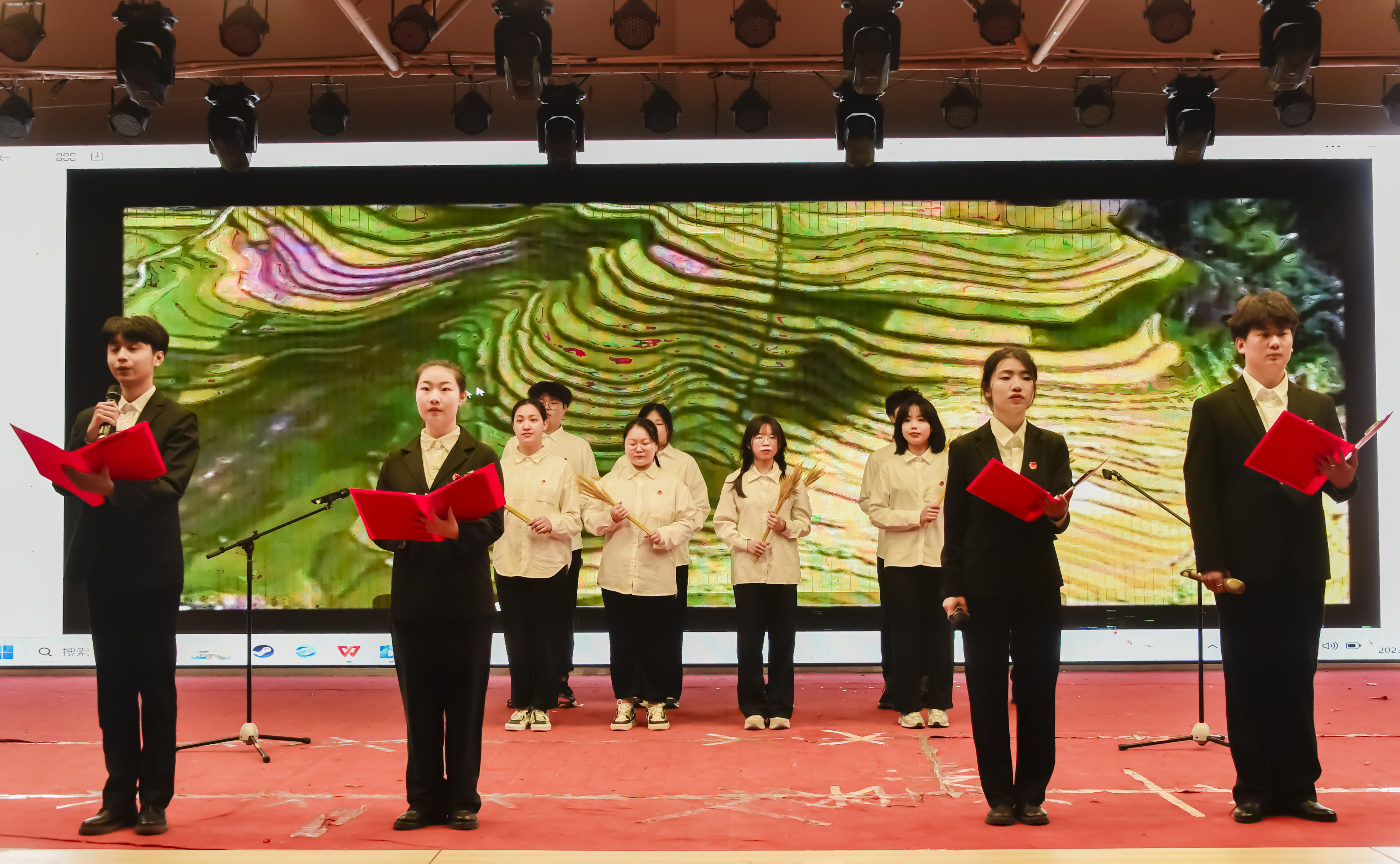人文与艺术学院干子豪代表获奖学生发言;人文与艺术学院音乐学2203班胡玲向全校学生宣读《阅读倡议书》。