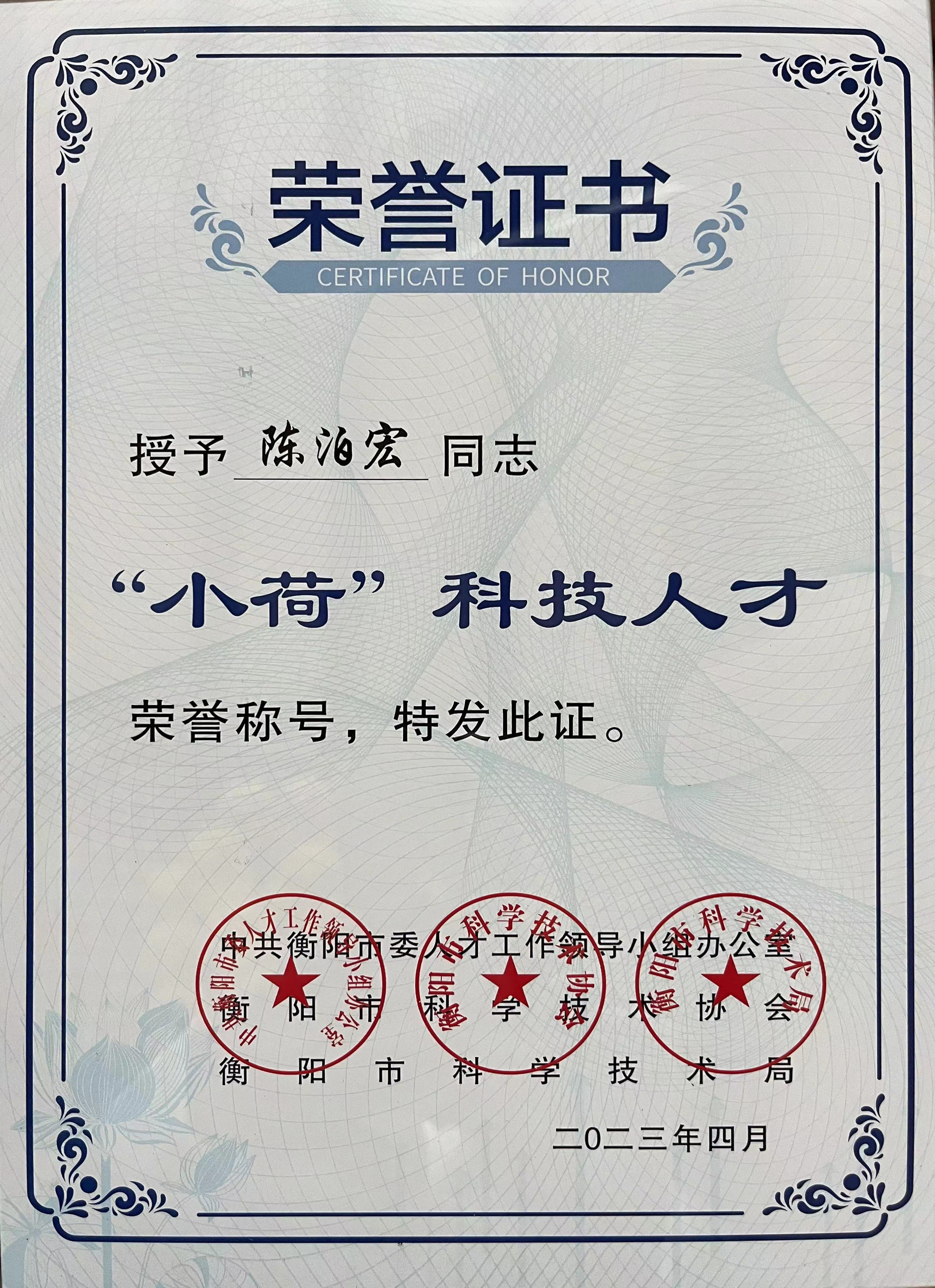 本网讯(记者 赵红深)4月28日,衡阳市科协召开第十一次代表大会, 省科协党组书记、常务副主席王瑰曙,市委书记刘越高出席开幕式并分别讲话,市委副书记、市长朱健主持开幕式。大会表彰了衡阳市首届22名优秀科技工作者和24名“小荷”科技人才,bevictor伟德机电工程学院青年教师陈泊宏喜获衡阳市首届“小荷”科技人才表彰。这是bevictor伟德首位获此殊荣的教师,并被衡阳市推荐参加湖南省科技人才托举计划。