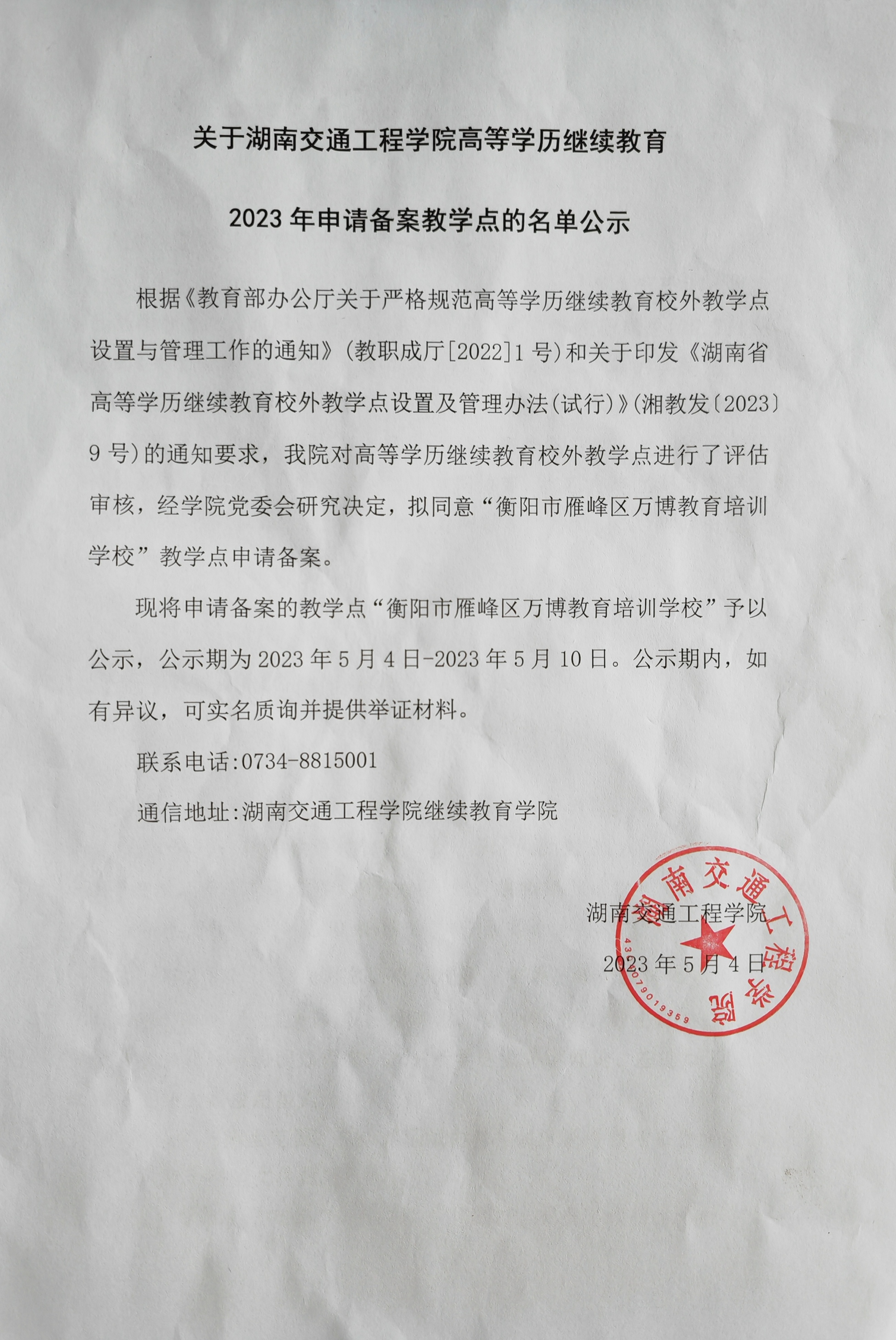 关于bevictor伟德官网高等学历继续教育2023年申请备案教学点的名单公示