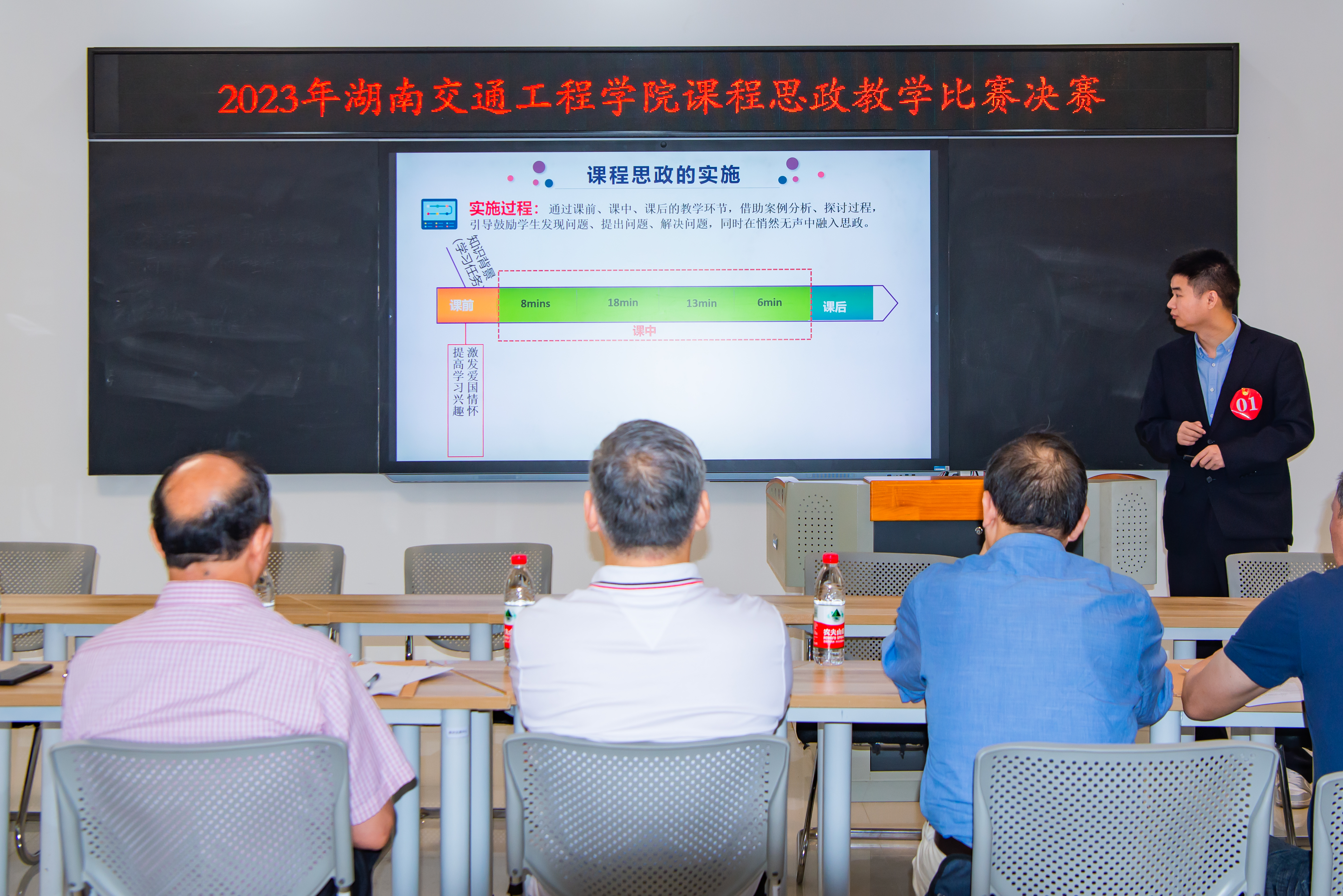 本次决赛分为理工医组和文科外语组两组,决赛由教务处承办。比赛分两个阶段进行,4月下旬,各二级教学院(部)相继开展了初赛,经过各教学单位的精心组织,严格评选,推选出16个团队参加校级决赛。根据赛程规则,决赛分为课堂教学设计作品函评和现场说课展示两个环节进行。第一环节为课堂教学设计,设计一节45分钟的课堂教学,教学内容自定;第二环节现场说课展示,时长共20分钟,10分钟教学设计思路及内容、5分钟课堂教学展示、5分钟专家提问。