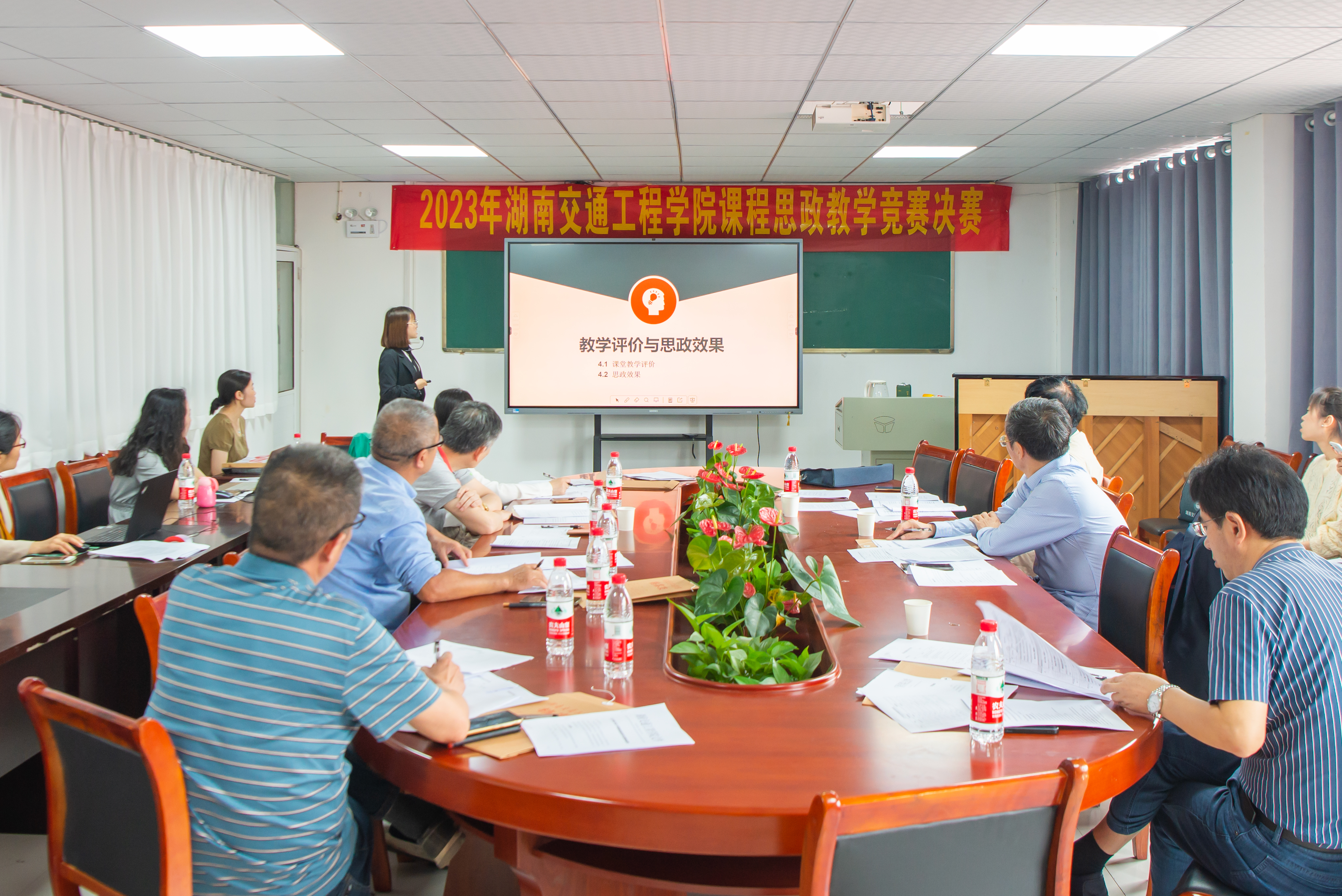 16个团队均结合自己的专业进行了精心准备,教学设计简洁合理,说课精彩纷呈,风格迥异,重点突出,逻辑性强;教学内容涉及大学英语、汽车构造、消费心理等多门课程,结合历史人物、家国情怀、民族自信和中国航天等思政元素,深入挖掘了课程教学中所承载的育人功能。在充分显示了深厚的专业功底和扎实的教学技能的同时,参赛老师们将思想政治教育巧妙地贯穿教学设计始终,使其融入教学活动,既赋予了传统的思想政治教育以鲜活的生命力,又丰富了专业课程本身的内涵。各参赛选手举止大方得体,沉稳自信,教学思路清晰,教材处理得当,课件新颖、富有创意,答辩思维敏捷,表达准确流畅,充分展示了bevictor伟德应用型高校教师过硬的教学能力、专业水平和良好的综合素质。