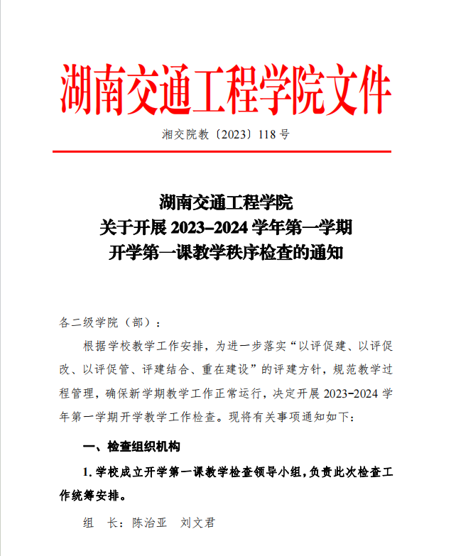 关于开展 2023-2024 学年第一学期 开学第一课教学秩序检查的通知