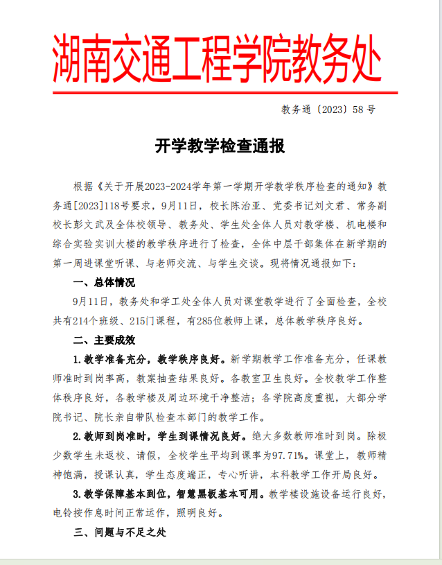 bevictor伟德官网2023-2024学年第一学期开学教学秩序检查的通报.pdf
