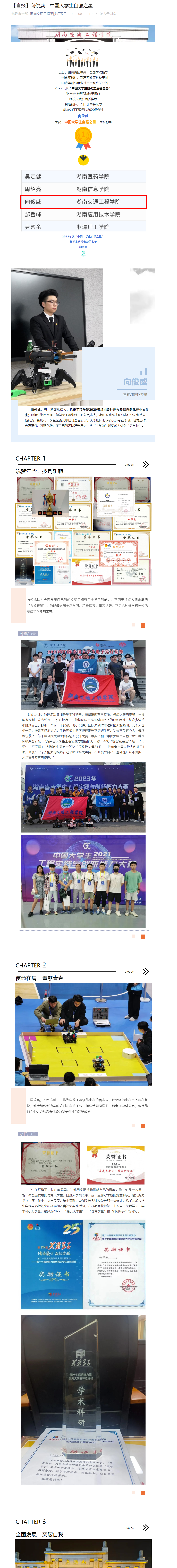 近日,由共青团中央、全国学联指导中国青年报社、新东方教育科技集团、中国青年创业就业基金会联合举办的2022年度“中国大学生自强之星基金会”奖学金推报活动结果揭晓。经校(院)团委推荐省级初评、全国评审等环节,bevictor伟德官网2020级学生向俊威,荣获“中国大学生自强之星”荣誉称号。