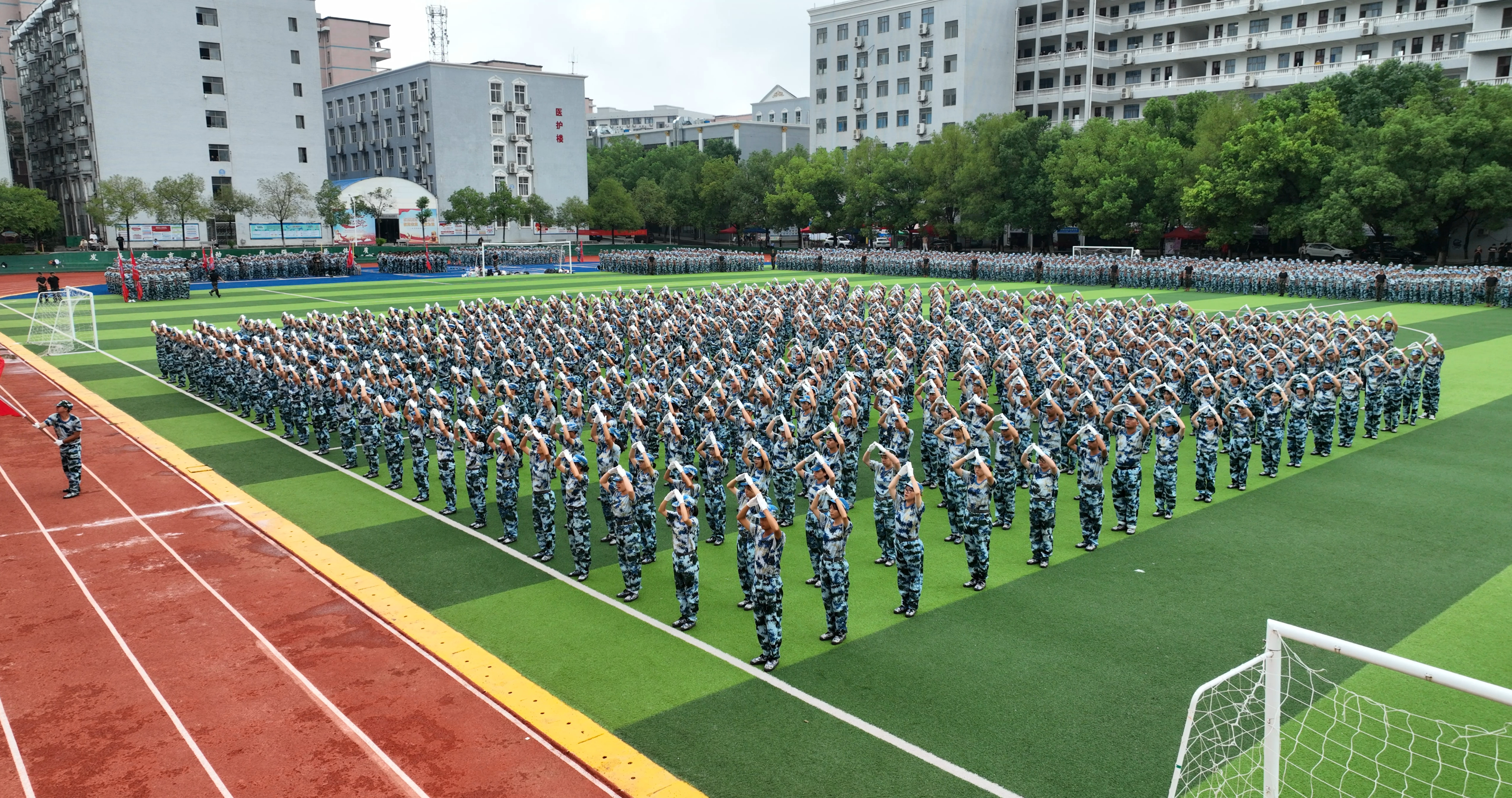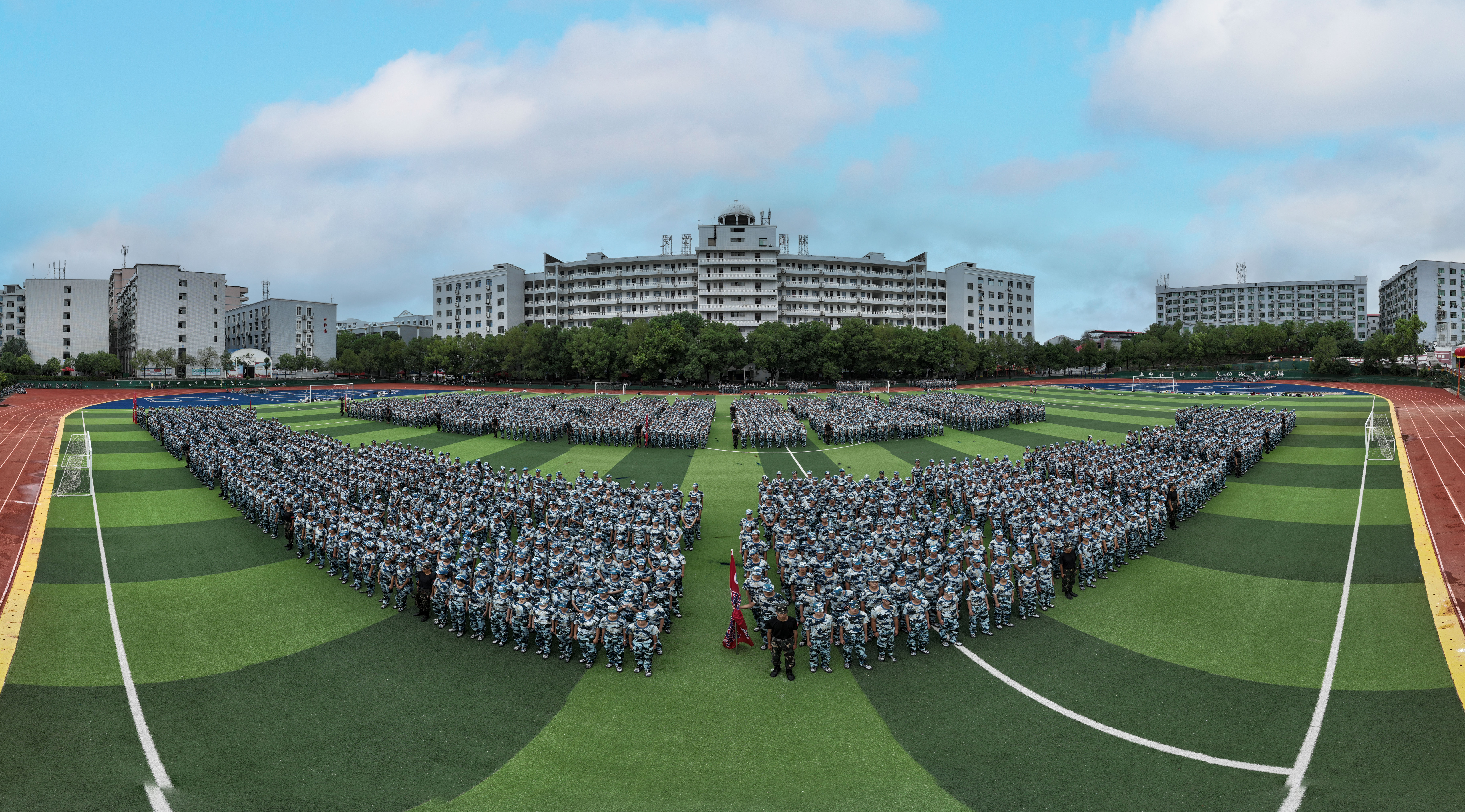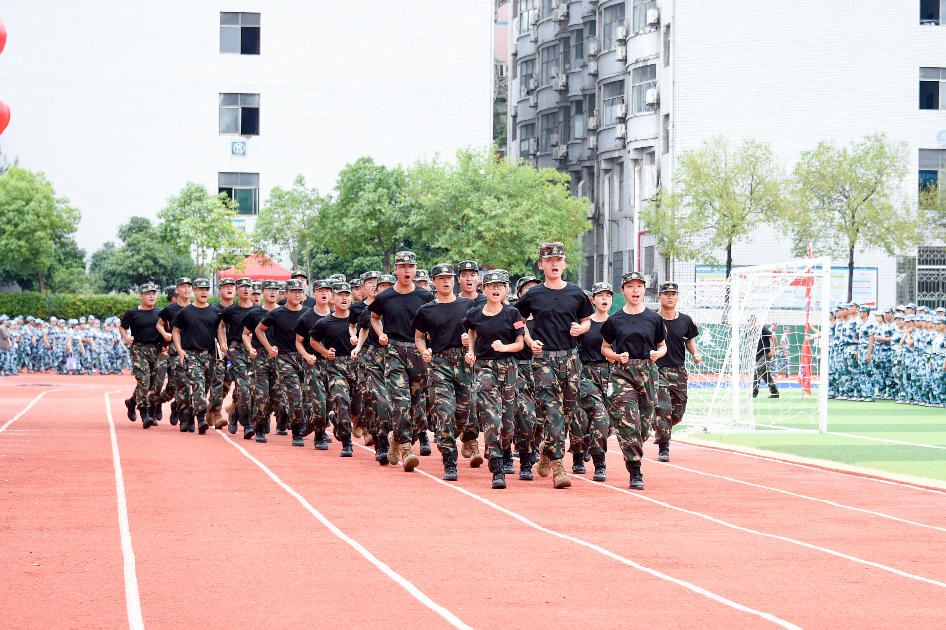 随着军训指挥员的一声口令,参加军训的2023级新生进行军事训练汇报表演,展示15天的军训成果。运动场内外一片恢弘之势,一场智慧与毅力相互碰撞的盛宴在交工院校园上演。