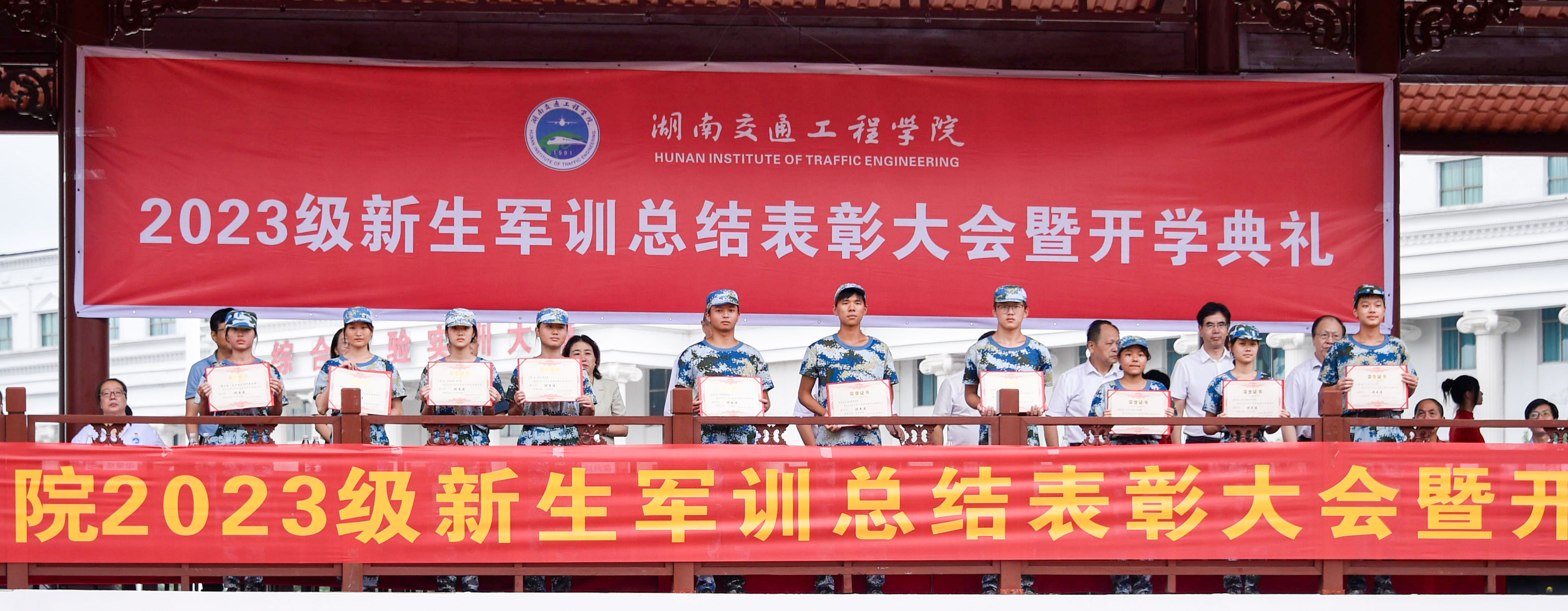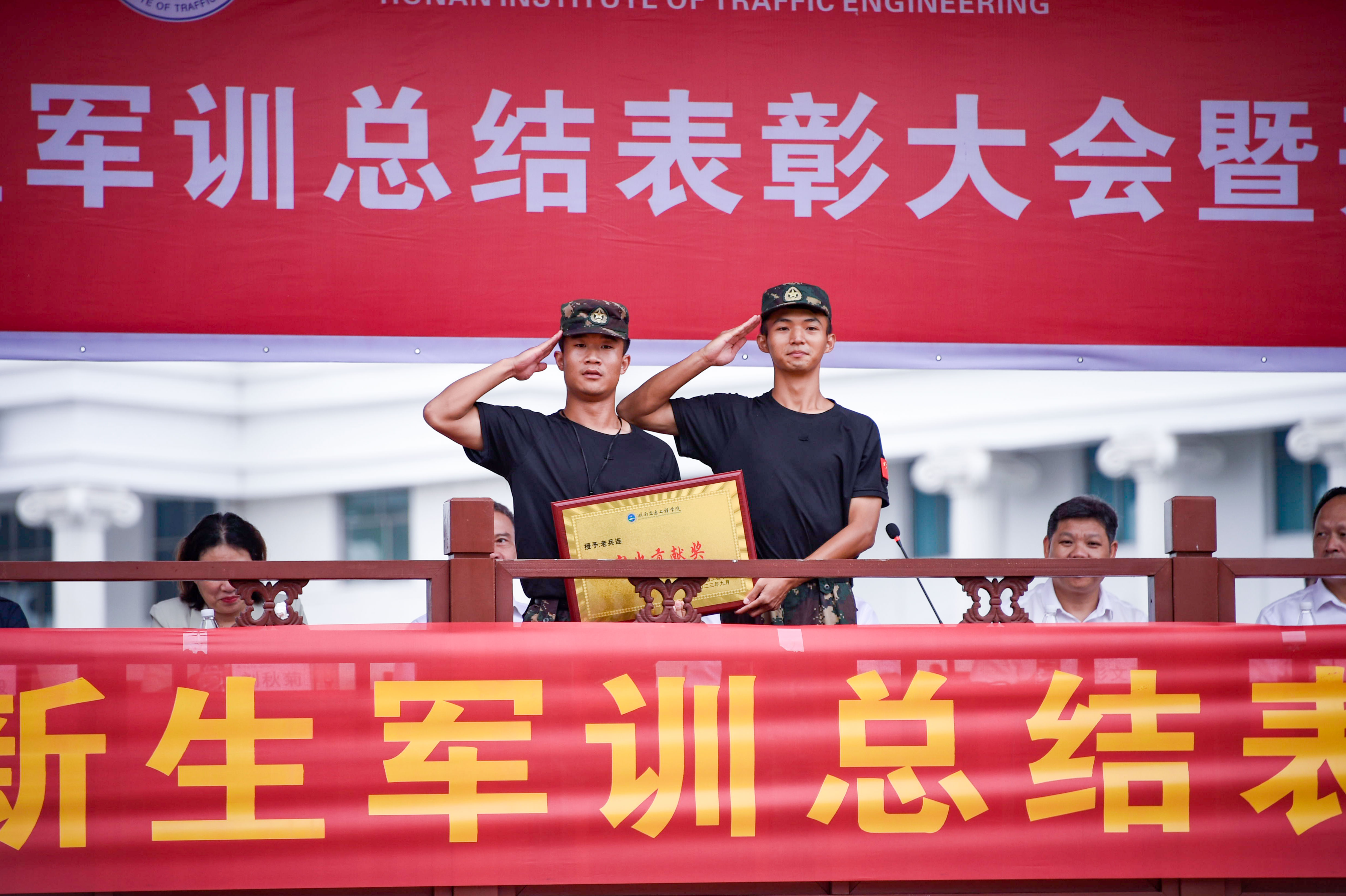 此次军训涌现出一批优秀学员和优秀教官,余孟辉宣读了“关于表彰2023年新生军训先进集体和优秀学员的决定”。授予四营(经济管理学院)为军事训练标兵营,授予五营(电气与信息工程学院)、六营(人文与艺术学院)为军事训练模范营,授予三营(机电工程学院)、一营(医学技术与护理学院)、二营(交通运输工程学院)为军事训练优胜营;授予一营三连等10个连为优秀连;授予褚甜等12位教官为优秀教官;授予罗朝扬等6位同志为优秀指导员;授予赖思宇等200位同学为优秀标兵。
