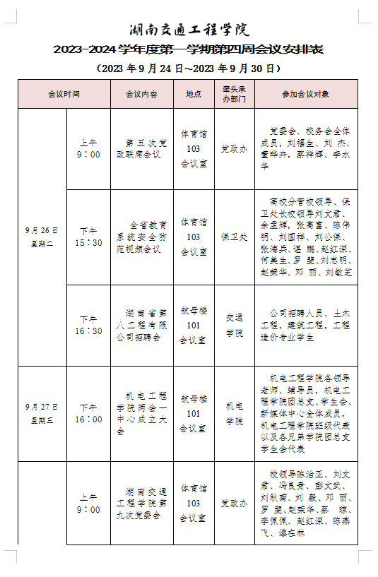 bevictor伟德官网2023-2024学年度第一学期第四周会议安排表