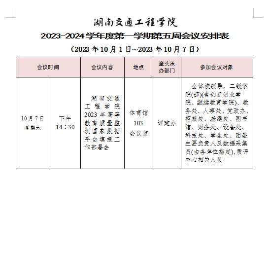 bevictor伟德官网 2023-2024学年度第一学期第六周会议安排表