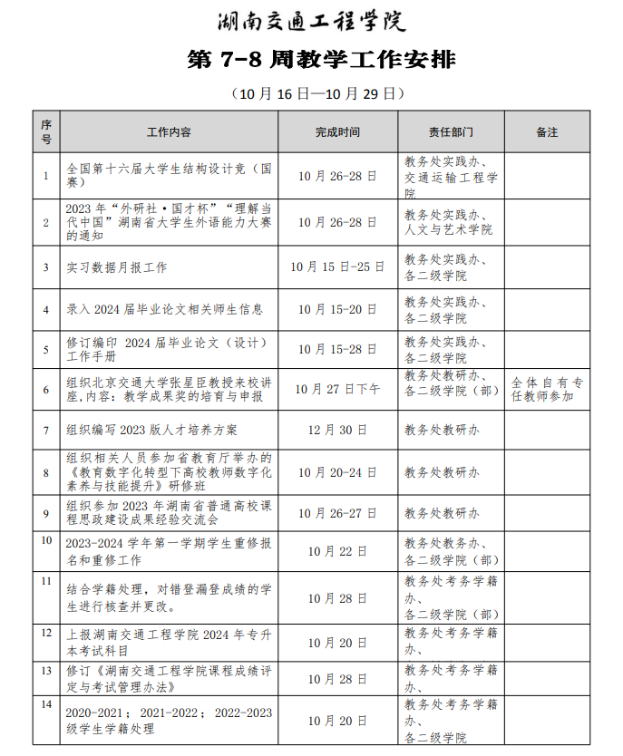 第7-8周教学工作安排