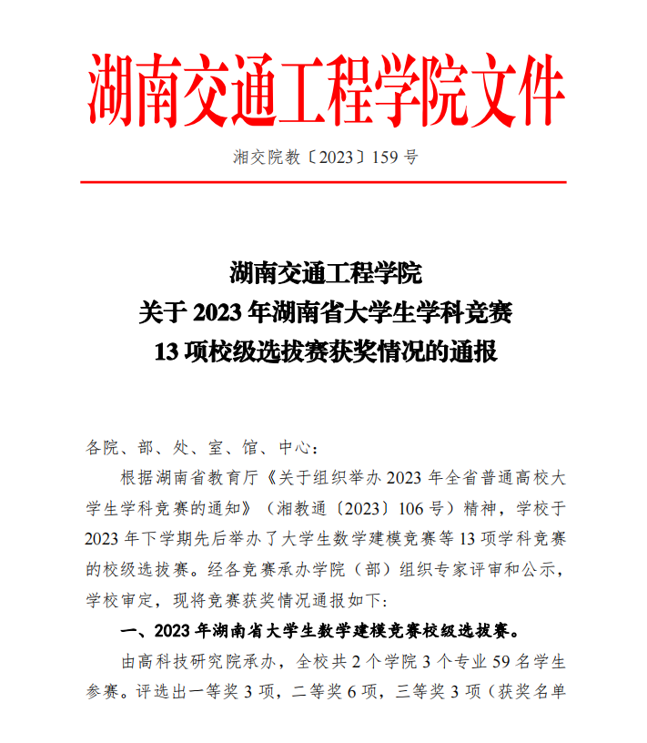 转教务处:bevictor伟德官网 关于 2023 年湖南省大学生学科竞赛 13 项校级选拔赛获奖情况的通报