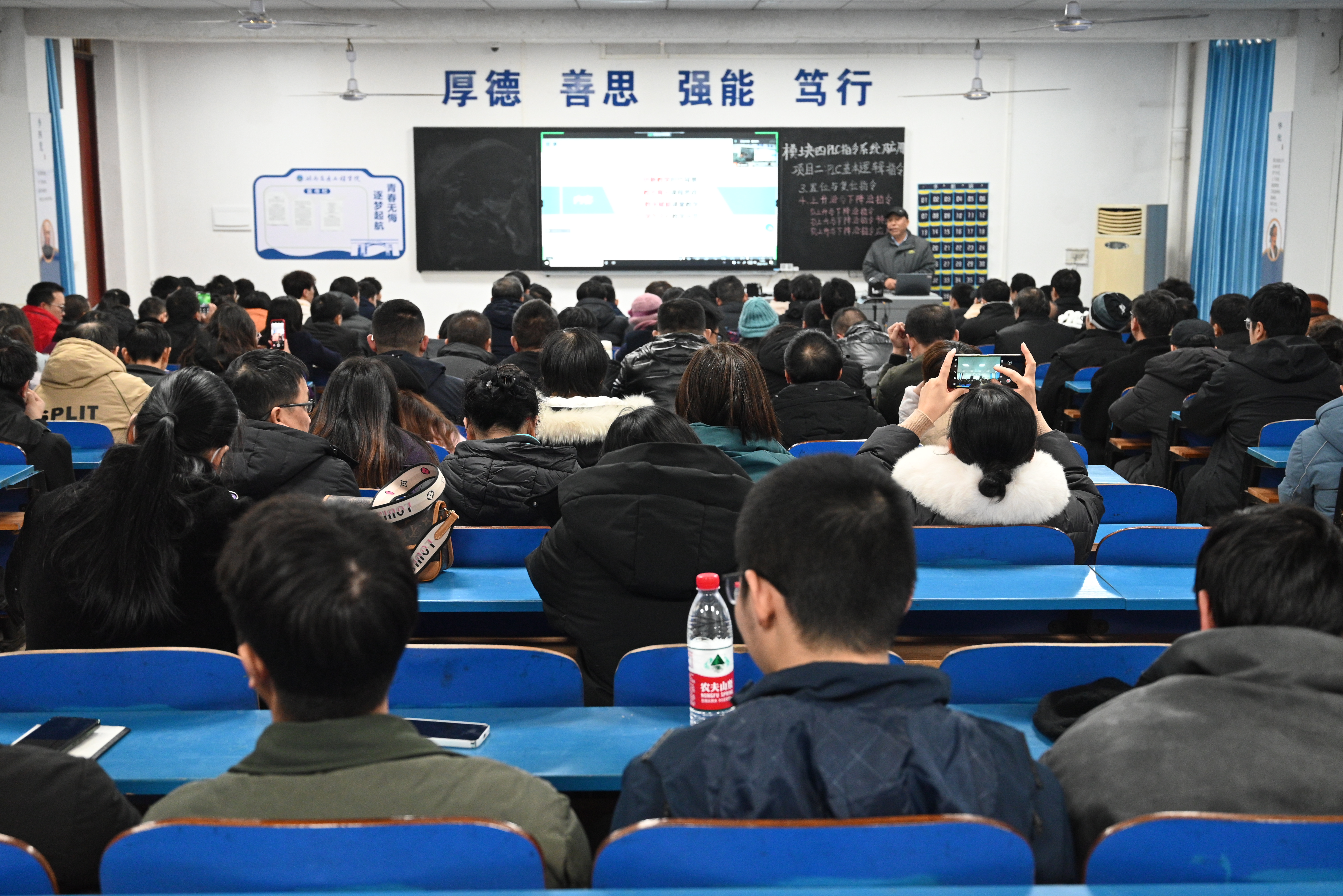 本网讯(通讯员  摄影  赵红深 12月21日下午,学校在教学大楼101教室举行2023年信息化教学示范课观摩活动。副校长刘义伦参加活动并作总结讲话;教务处处长肖四喜、副处长黄玲娟携教务处全体人员,各二级学院(部)教学副院长(主任)、全体辅导员、教研室主任参加现场观摩;各二级学院(部)专任教师由院长(主任)组织同时在教学楼103、306、507、606,机电楼308、326、410、514,航母楼301等9个分会场视频收看。