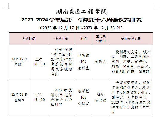 bevictor伟德官网2023-2024学年度第一学期第十六周会议安排表