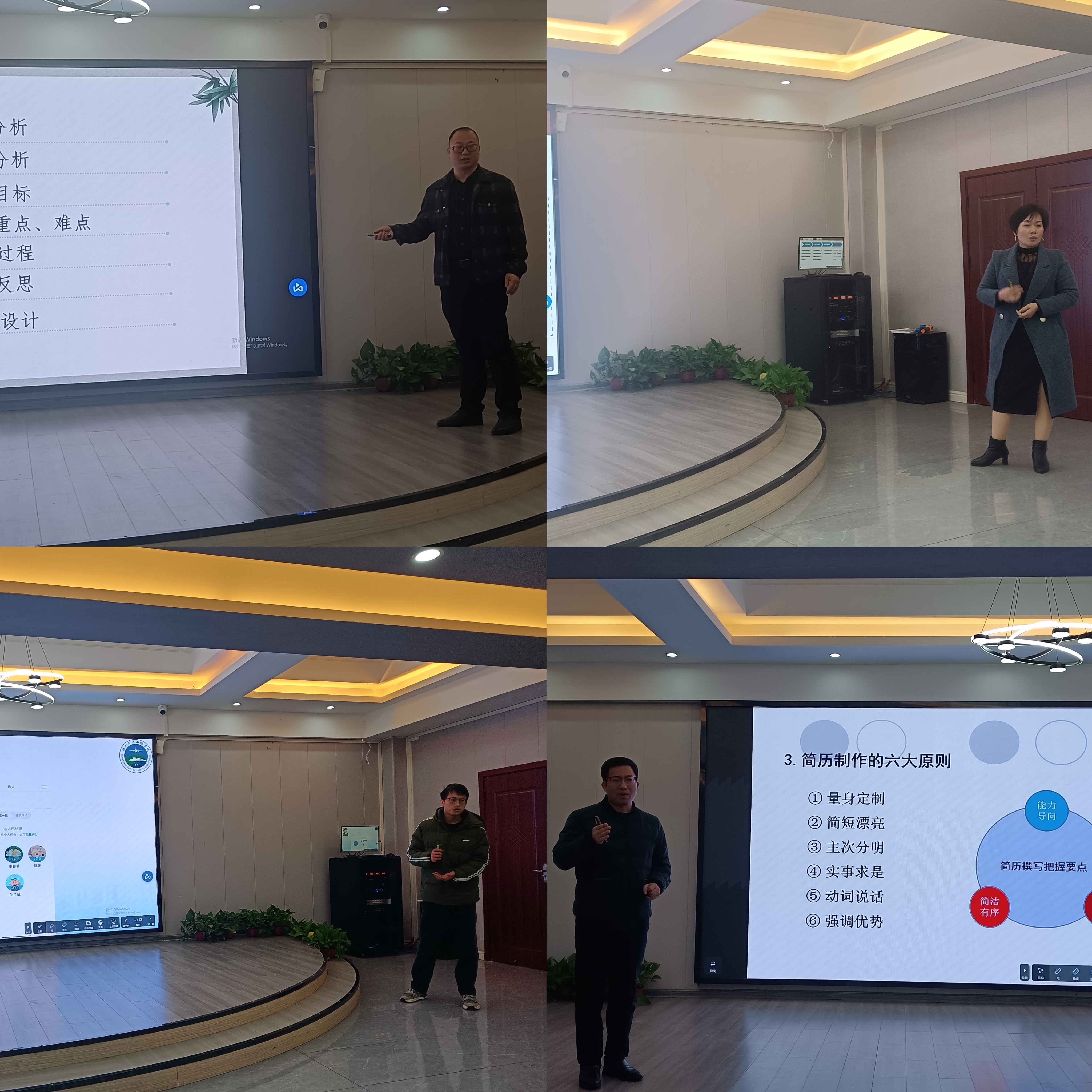 为确保考核工作规范顺利进行,创新创业学院成立了以院长董晔卉为组长,副院长李文善、就业处处长谢健民、就业创业教研室主任周永为考评员的专家小组。本次考核内容主要围绕着“树立师德师风,展现教学风采”,坚持以立德树人为根基,针对教育教学目标是否明确,语言表达是否有感染力,课件制作是否清晰美观、教学设计是否思路清晰,有无课前任务、课中教学和课后实践拓展,灵活多变的教学方法,是否对学生进行科学思维和创新意识的培养,关注学生学习效果的评价和反馈,有效地将信息化教学融入课堂。教师现场进行15-20分钟的授课,考核结果按优秀(85分以上)、良好(75—84分)、合格(60—74分)三个等级进行评定。