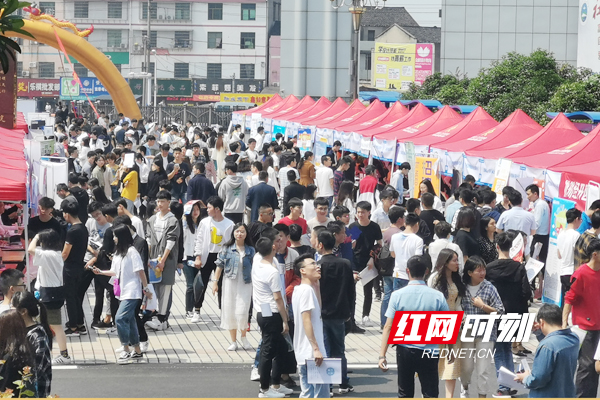 招聘会现场人头攒动,气氛热烈。