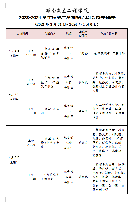 bevictor伟德官网2023-2024学年度第二学期第六周会议安排表
