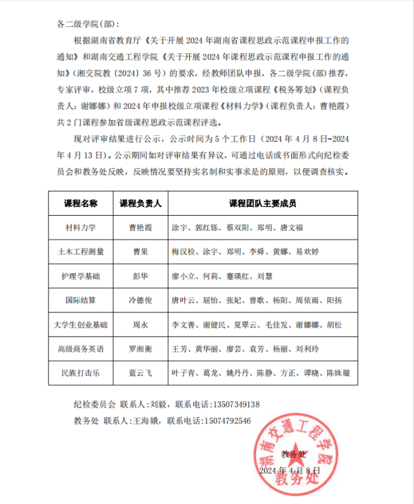 2024年bevictor伟德官网课程思政示范课程评审结果公示
