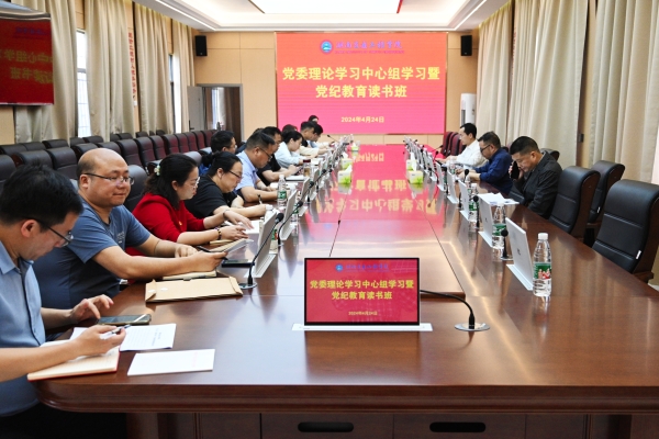 本网讯(通讯员 摄影 赵红深)4月24日下午,学校在航母楼四楼会议室举行校党委理论学习中心组学习暨党纪学习教育专题读书班,集中学习研讨,深研细读新修订的《中国共产党纪律处分条例》(以下简称《条例》),推动全校党纪学习教育走深走实。校党委书记刘文君主持学习研讨。学校党委理论学习中心组全体成员,党务工作部门负责人,二级党总支(直属支部)书记、副书记参加学习。