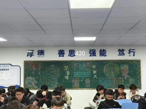 为了深入学习雷锋精神,培养有理想、敢担当、能吃苦、肯奋斗的新时代好青年。机电工程学院于3月11日晚19:20成功举行以“不忘初心学雷锋,青春使命共传承”为主题的黑板报评比活动。