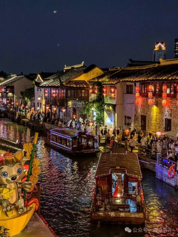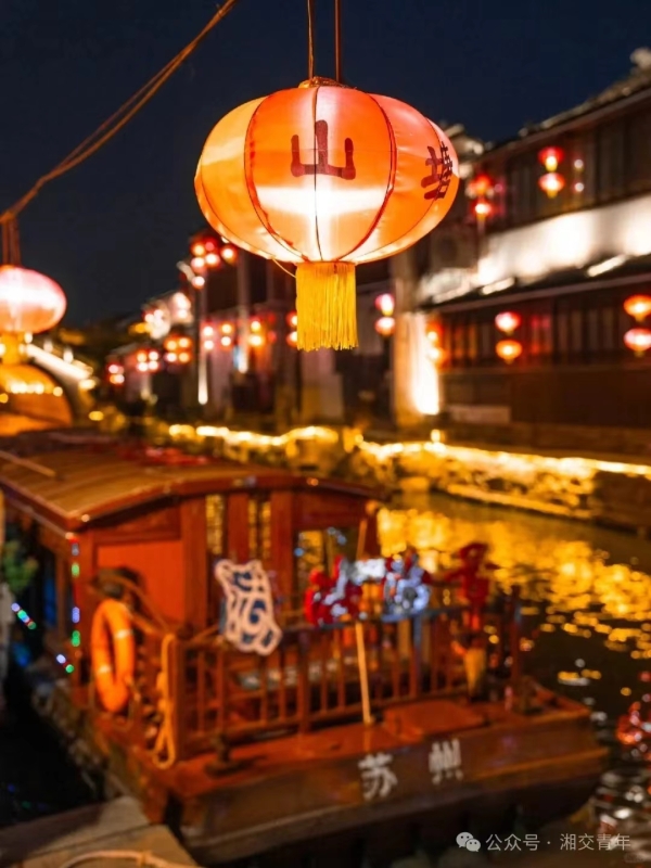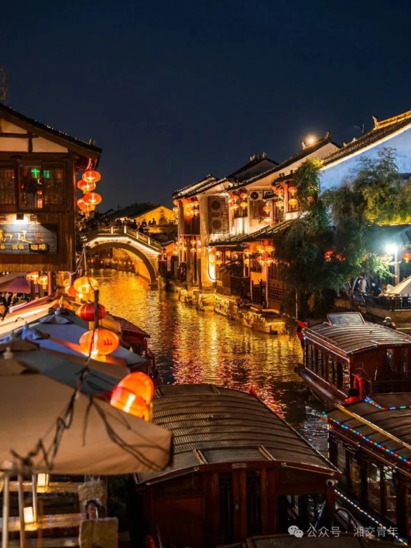 两岸人家的灯笼亮起,浆声灯影里吹吹晚风,好似可以在热闹非凡的夜景里窥见古时繁华南。