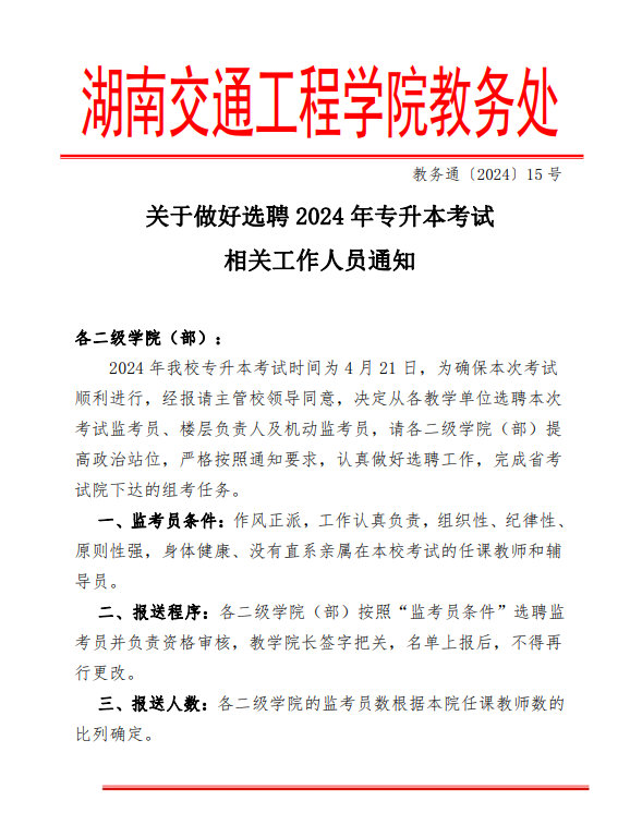 关于做好选聘2024年专升本考试相关工作人员通知