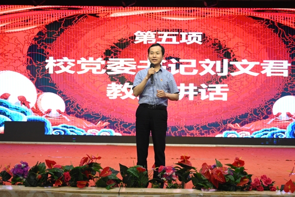 刘文君作总结讲话。他代表学校向全校广大青年师生致以诚挚的问候,向受到表彰的集体和个人表示热烈的祝贺。他指出,一年来,全校各级团组织和团员青年,勇担使命、埋头苦干,踔厉奋发、勇毅前行,为学校合格评估建设和高质量发展作出了积极贡献,留下了青春奋斗的美丽印记。学风考风持续好转,国赛省赛勇创辉煌,升研率创下历史新高,西部计划报名人数突破800……刘文君要求各行政部门、各教学院部要进一步关心、支持青年特别是共青团工作,关心、鼓励青年学生的成长和成才。各级党团组织要在“引领青年、服务青年”的育人过程中扎实做好学生权益的保障和服务,把党团组织建设成为信得过、靠得住、离不开的坚强后盾。他希望,广大团员青年开拓进取,勇于创新,在“坚定信念、团结奋斗”的实际行动中历练成长,在“施展才干、实现梦想”的生动实践中贡献国家、服务社会,用青春的蓬勃力量实现人生价值。