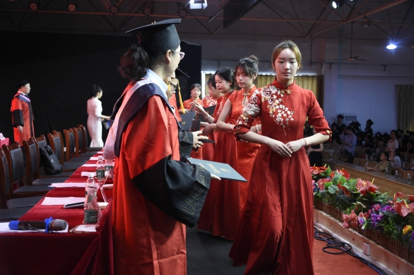 在庄严的学位授予仪式上,2024届毕业生们身着学士服,依次走上主席台;主席台上主礼教授们为获得学士学位的学生代表拨正流苏,颁发学士学位证书,并亲切握手,逐一合影。饱满的流苏里有甜蜜、有艰辛、沉甸甸的证书里是青春、是奋斗。这一刻,他们的脸上洋溢着自豪和喜悦,手中的证书不仅是对他们学术成果的认可,更是他们人生新篇章的见证。