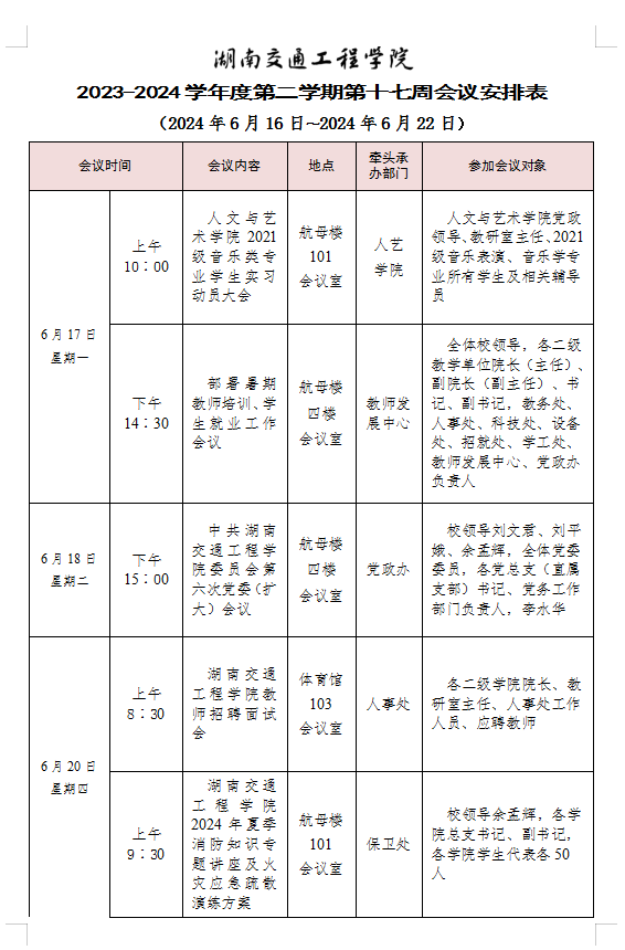 bevictor伟德官网2023-2024学年度第二学期第十七周会议安排表