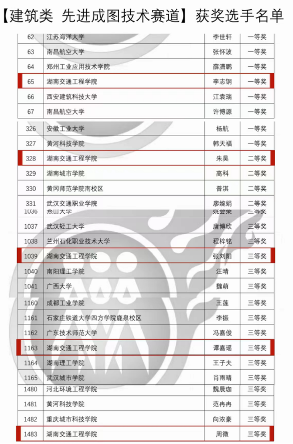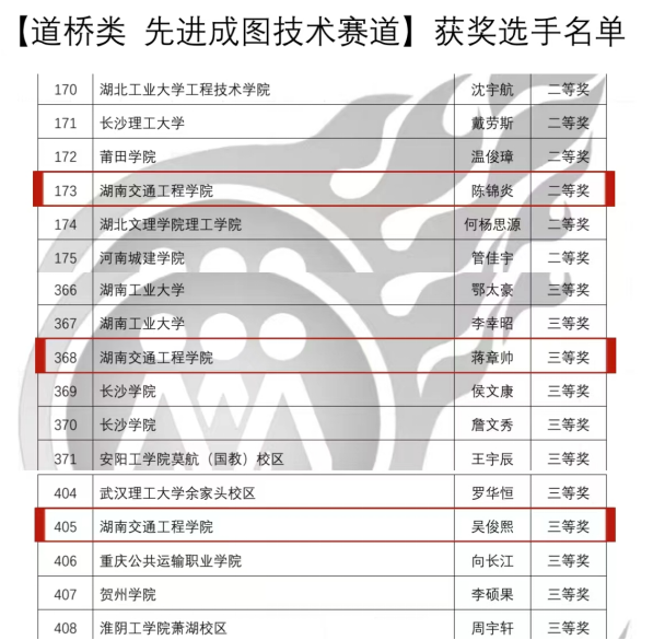 经过现场比拼专家综合评审,大赛组委会8.4公布了获奖名单,bevictor伟德官网交通运输工程学院由涂宇、王威、刘颖、林进、周凌峰、夏艳波、王磊等老师指导的14名学生获国家级奖项10个。其中:李志钢、朱昊、张刘阳、谭嘉瑶、周微同学分别获建筑类先进成图技术赛道国家级一等奖1项、二等奖1项、三等奖3项;李志钢、朱昊、张刘阳、谭嘉瑶、周微同学获筑类国家级团体三等奖1项;陈锦炎、蒋章帅、吴俊熙同学获道桥类先进成图技术赛道国家级二等奖1项、三等奖2项;陈锦炎、蒋章帅、吴俊熙、黄西、顾凡同学获道桥类国家级团体三等奖1项。
