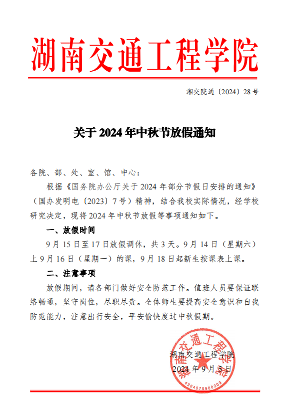 bevictor伟德官网关于 2024 年中秋节放假通知
