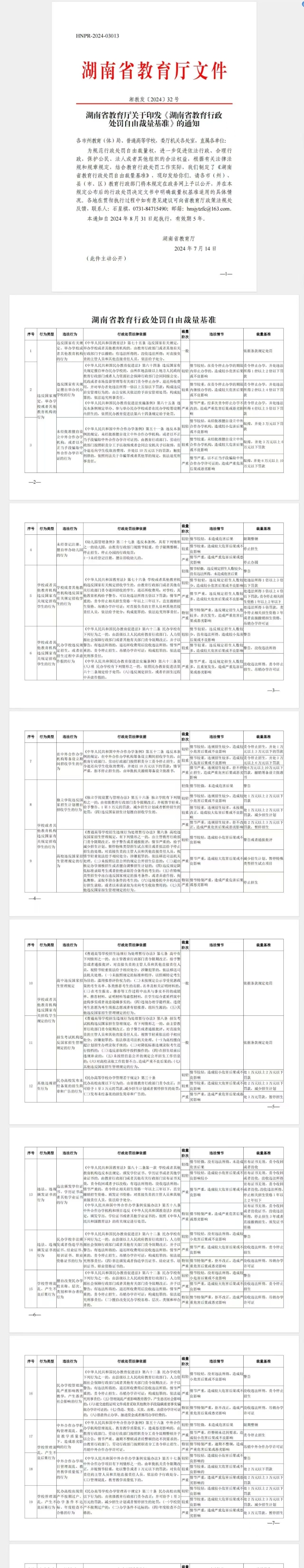 湖南省教育厅关于印发《湖南省教育行政 处罚自由裁量基准》的通知