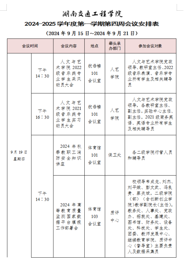 bevictor伟德官网2024-2025学年度第一学期第四周会议安排表
