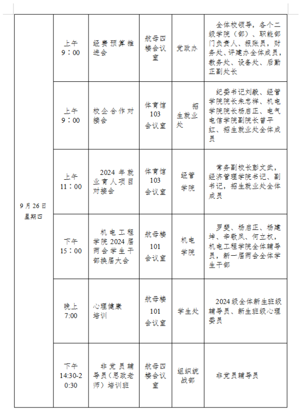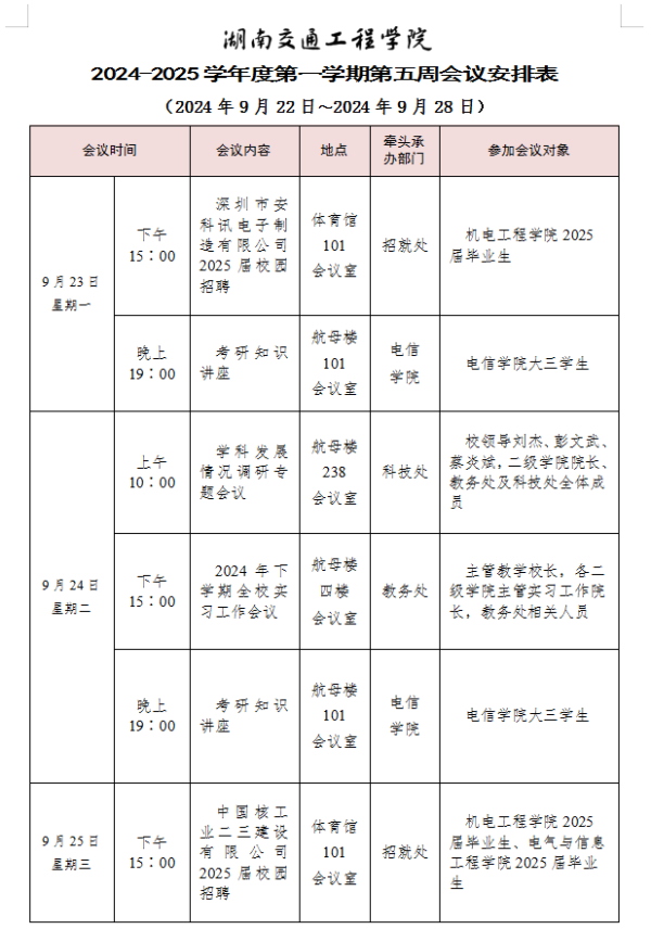 bevictor伟德官网2024-2025学年度第一学期第四周会议安排表