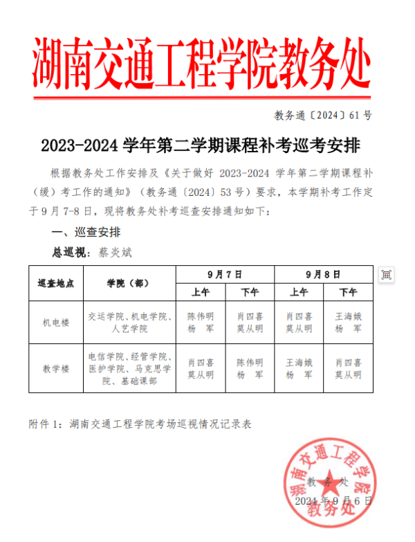2023-2024 学年第二学期课程补考巡考安排pdf