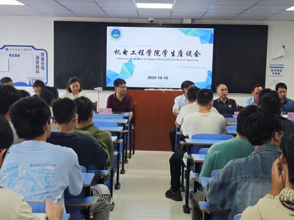 为倾听学生心声,回应学生合理关切,助力学生成长,切实构建和谐的师生关系,提升学生的幸福感、获得感和满意度,机电工程学院于2024年10月10日下午4:20在机电楼412教室举行了学生座谈会,学院院长杨启正、书记罗斐、副院长杨建坤、副书记辛敬凤、各专业教研室主任以及各班学生代表参加了本次座谈会。