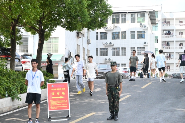 从校大门经图书馆、综合实训大楼到篮球场,保卫处工作人员引导车辆安全有序出入,各学院志愿者们为新生和家长们提供“一对一”服务,帮助新生运送行李。在毛泽东铜像文化广场,各学院设立了新生接待和行李寄存处,教学楼一楼各学院设立了报到工作站,悉心引导新生“一站式”完成个人身份审核、缴费信息核对、新生物品领取、扫码签到入学等报到手续,迎新流程较往年进一步简化。在教学楼一楼大厅,学校设立了家庭经济困难学生“绿色通道”,解答相关资助政策,开展“特困新生关爱计划”,使他们充分感受到学校的关心关爱,顺利融入校园生活。炎炎烈日下,不知不觉中,汗水浸透了师生们的衣衫,一个个忙碌的身影绘就了烈日高温下一幅幅令人感动的画面。