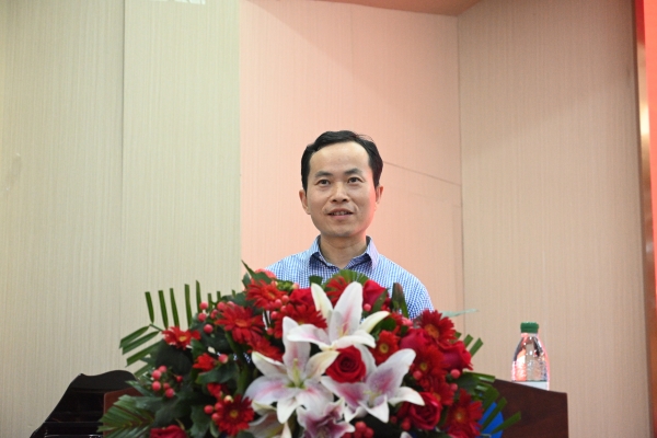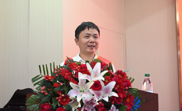 人文与艺术学院蓝云飞老师代表优秀教师发言。他对学校领导与同事一直以来对自己的支持与协作表示感谢,畅谈了在学校教学科研工作中获得的成绩和感悟,表示将继续以饱满的热情、昂扬的斗志战斗在工作的最前沿,为学校本科教学合格评估和建设发展贡献力量。