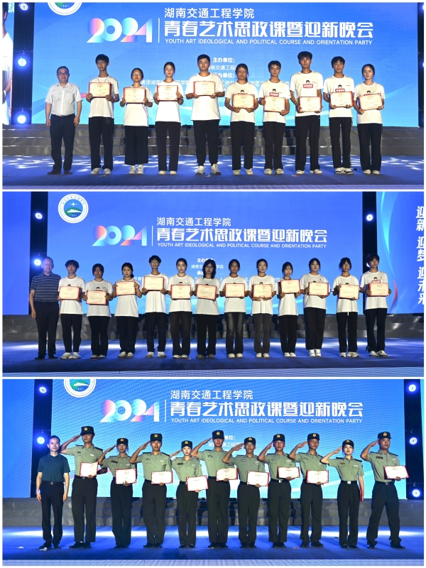 副校长余孟辉宣读了《关于2024级新生开展迷彩青春,最美瞬间开学季“最美军训照”评选结果的表彰决定》《关于表彰 2024 年迎新志愿服务工作优秀个人的决定》《关于表彰 2024 级新生军训教官铁血风采,最美担当开学季最美教官评选活动的决定》3个表彰决定,校领导分批次在节目中穿插为获奖集体和个人颁奖。