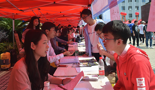 招聘会现场人头攒动,此次前来招聘的有中铁六局集团路桥建设有限公司、上汽大众汽车有限公司、惠州TCL移动通信有限公司、瑞声光电科技(常州)有限公司、武汉海尔电器股份有限公司、优德精密工业(昆山)股份有限公司等262家用人单位,其中世界500强16家、中国100强8家和上市公司18家,共提供就业岗位4779个,2026名毕业生在双选会现场签订了“三方协议书”,签订率达93.8%。