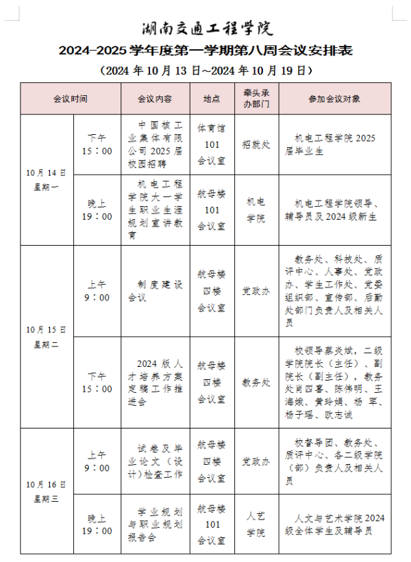 bevictor伟德官网2024-2025学年度第一学期第八周会议安排表