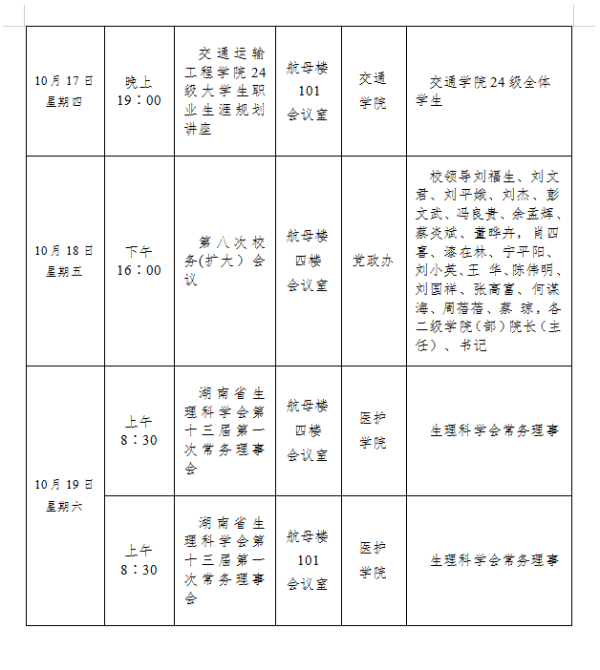 bevictor伟德官网2024-2025学年度第一学期第七周会议安排表