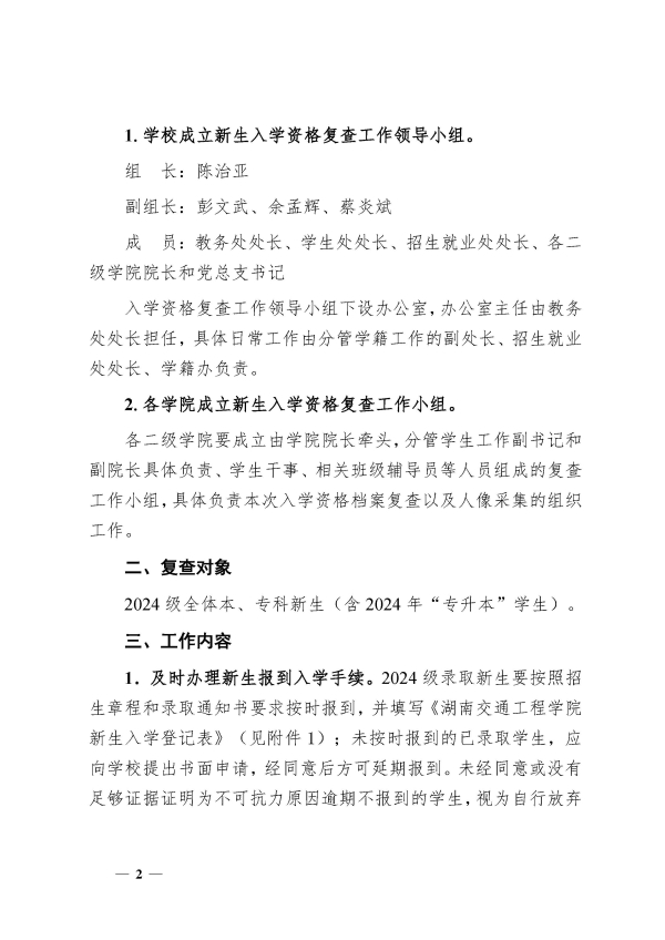 关于开展2024级新生入学资格复查工作的通知(湘交院教〔2024〕147号)