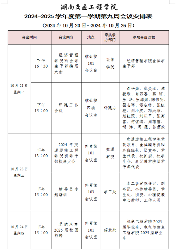 bevictor伟德官网2024-2025学年度第一学期第九周会议安排表
