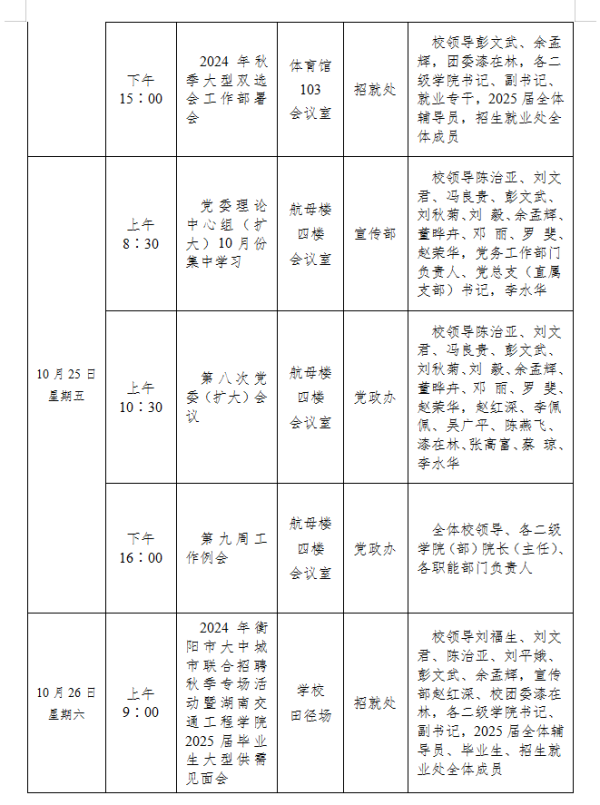 bevictor伟德官网2024-2025学年度第一学期第八周会议安排表