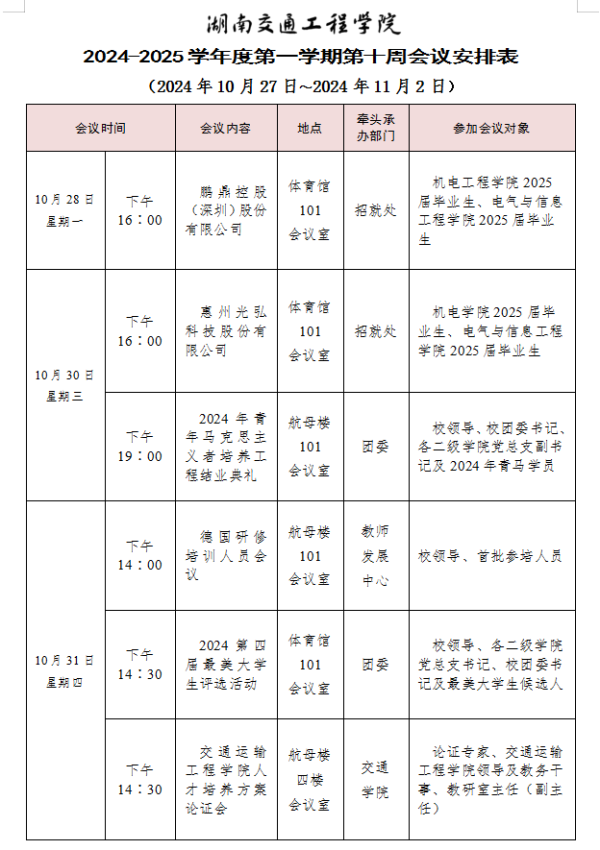 bevictor伟德官网2024-2025学年度第一学期第十周会议安排表
