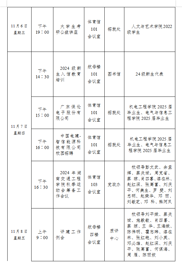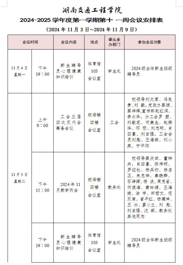 bevictor伟德官网2024-2025学年度第一学期第十一周会议安排表