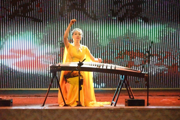 古筝重奏《天山之歌》展现出别样风情。陈杏婷同学领衔11位古筝演奏者指尖齐动,把古筝特有的空灵音色,将人们带到了遥远的天山脚下。尤其是陈杏婷同学的古筝独奏、崔碧莹老师钢琴伴奏的《定风波》更是把晚会推向了高潮,掌声、呐喊声、欢呼声一浪高过一浪。那清脆悦耳的音符,似雪山融化的清泉流淌,又似草原上微风拂过的轻响,描绘出一幅天山壮美秀丽的风光画卷,使观众仿若身临其境,陶醉于这充满异域风情的音乐之中。